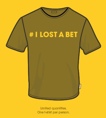 Start a conversation about problem gambling with a free, limited-edition I LOST A BET t-shirt. In exchange for your free shirt, you just have to share a Tweet or Facebook post.